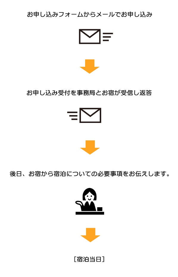 宿泊のお申し込み ご予約までの流れ だいちゃん農園 GUEST HOUSE 山形ゲストハウス 蔵民宿 あおやぎ 農家民宿 果菜里庵 いこいの宿 農 農家民宿・手打ちそば 百笑家 姫 農家民宿 はちみつ屋 農家民宿 松べえ 農家民宿 権太郎 農家民宿 清定 農家民宿 庄太郎 農家民宿・農家茶屋 いろり 農家民宿 善左ェ門 農家民宿 若松屋 民泊工房FUu~ 農家民宿 上野ん家 農家民宿 はる風 農家の宿 母家 民泊耕房 とら豆 農家民宿 いからし「本家」 農家民宿 いからし「新家」 農家民宿 あえる村 ギャラリー 雪々山々 蔵農泊 みんなの善場所 「農家のお宿の会」ご利用に関するお問い合わせ メールから お問い合わせフォーム クリックするとメールフォームが立ち上がります お電話 023-647-8351山形県グリーン・ツーリズム推進協議会 事務局までお問い合わせ受付時間 午前8時30分~午後5時15分(土曜・日曜・祝日、年末年始を除く)