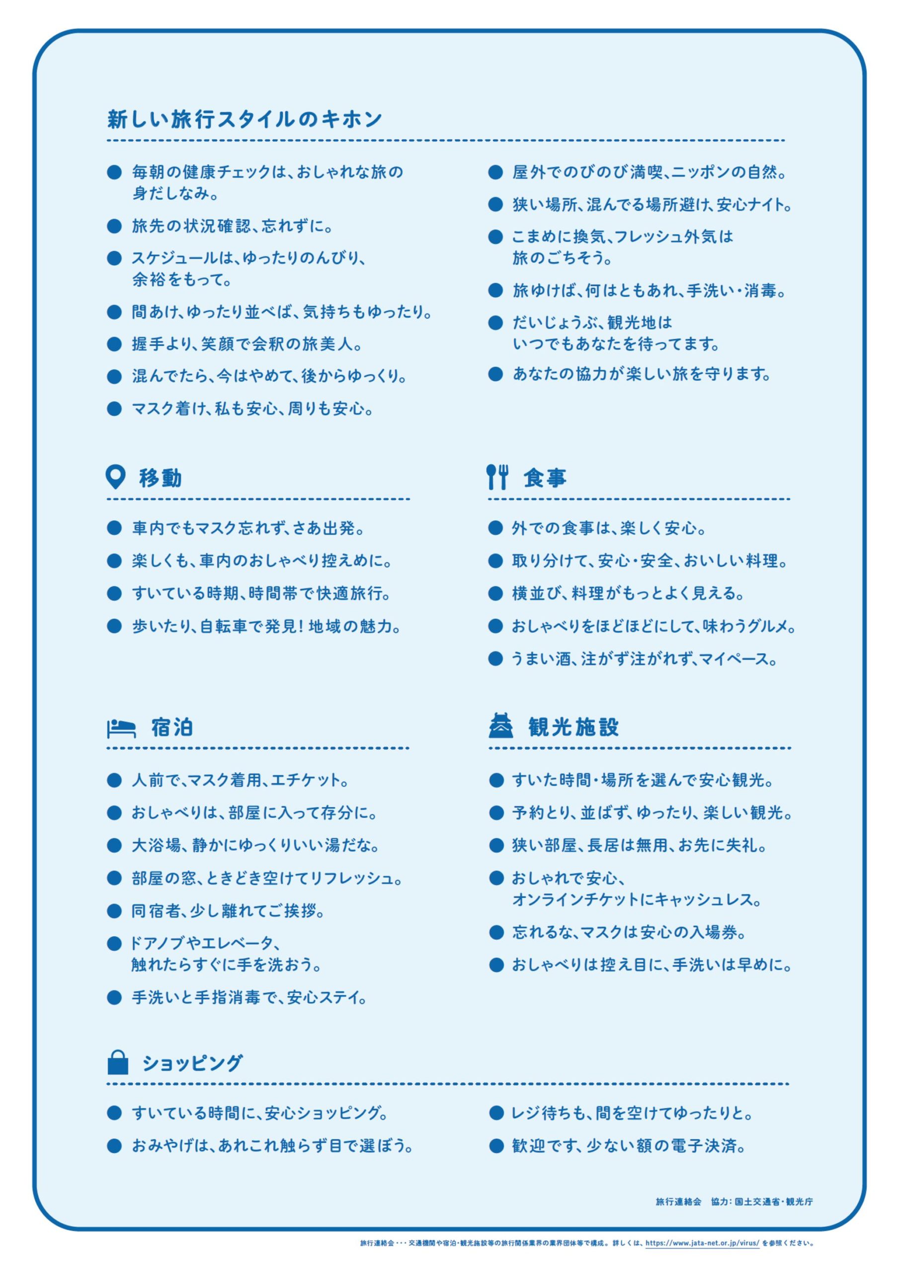 「新しい旅のエチケット」は印刷してお持ち運びいただけます。ご旅行の前にご確認いただき、ぜひ旅のお供にお持ちください。