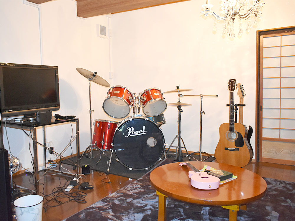 ドラムやギターなど本格的な楽器の貸出もOK。