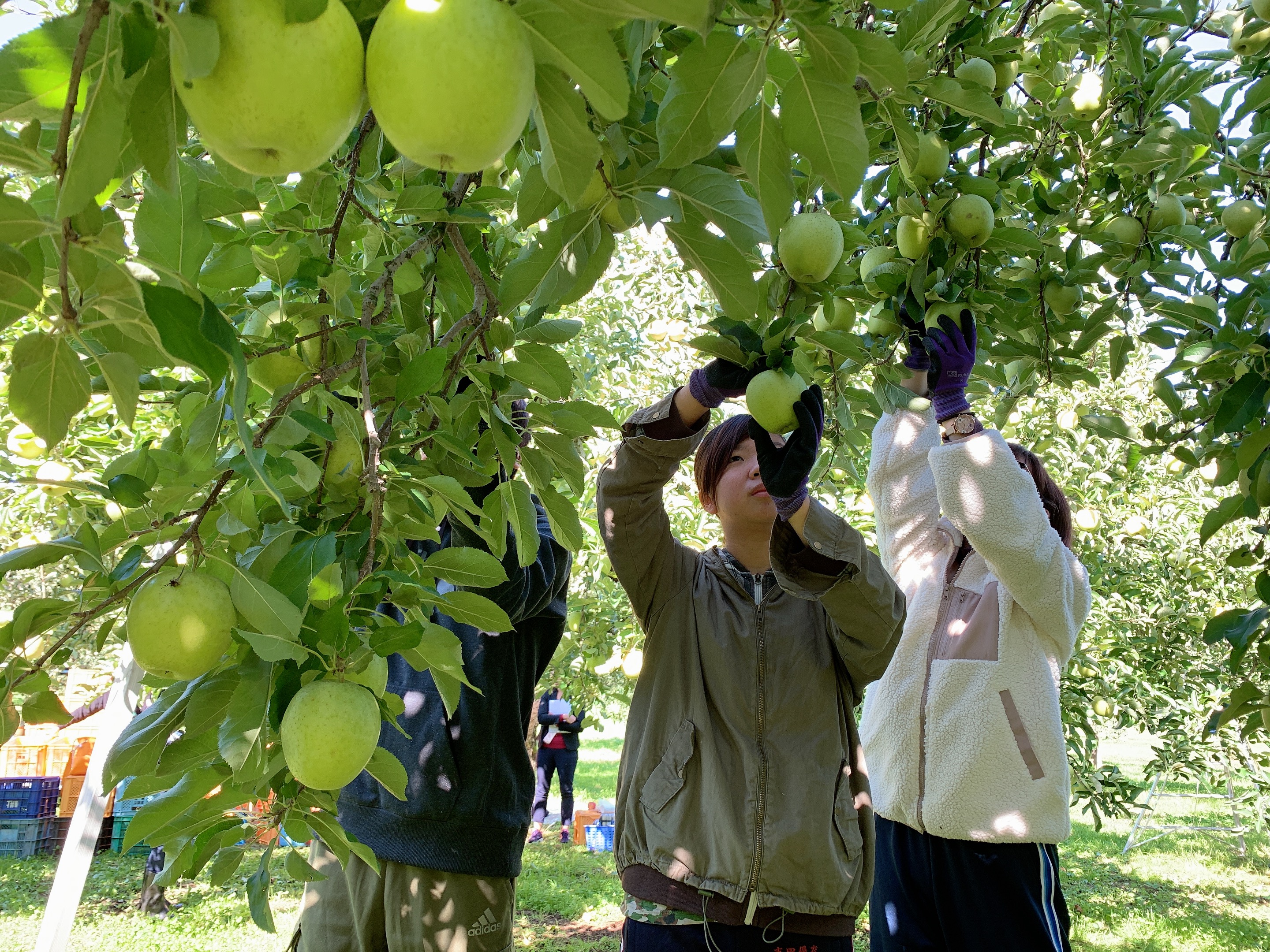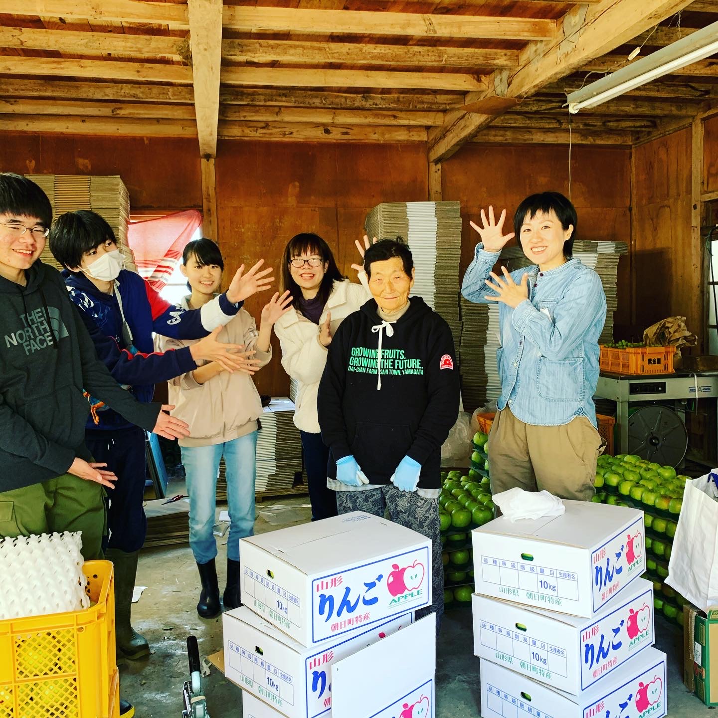 お宿からのお知らせ だいちゃん農園 GUEST HOUSE 新世界プロジェクト『心悩む子供たちへ修学旅行をゲストハウスで』りんご作業でびっくり元気に(^^♪ 2019/10/16 2019/10/16 先ずは玄関でパチリ(^^♪ もいだ?を親元へ送ります。 頑張った後のりんごの試食 王林もぎ!初めての?の収穫に熱が入り、太陽の基心も体も元気に(^^♪ 居場所作りのと手伝い?だいちゃん農園クルー達もNHK山形・YBCに協力(最近テレビも慣れっこ気味ですね♬( ´艸`)