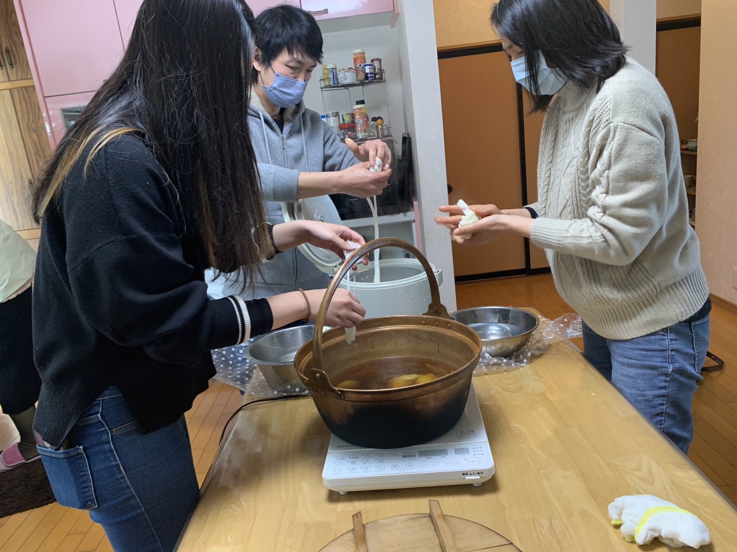 お宿からのお知らせ だいちゃん農園 GUEST HOUSE お雑煮と凍み餅の体験♪ 2023/03/08 2023/04/29 台湾のお客様です! お雑煮と凍み餅の体験を行いました♪ 皆さん楽しんでもらえました!