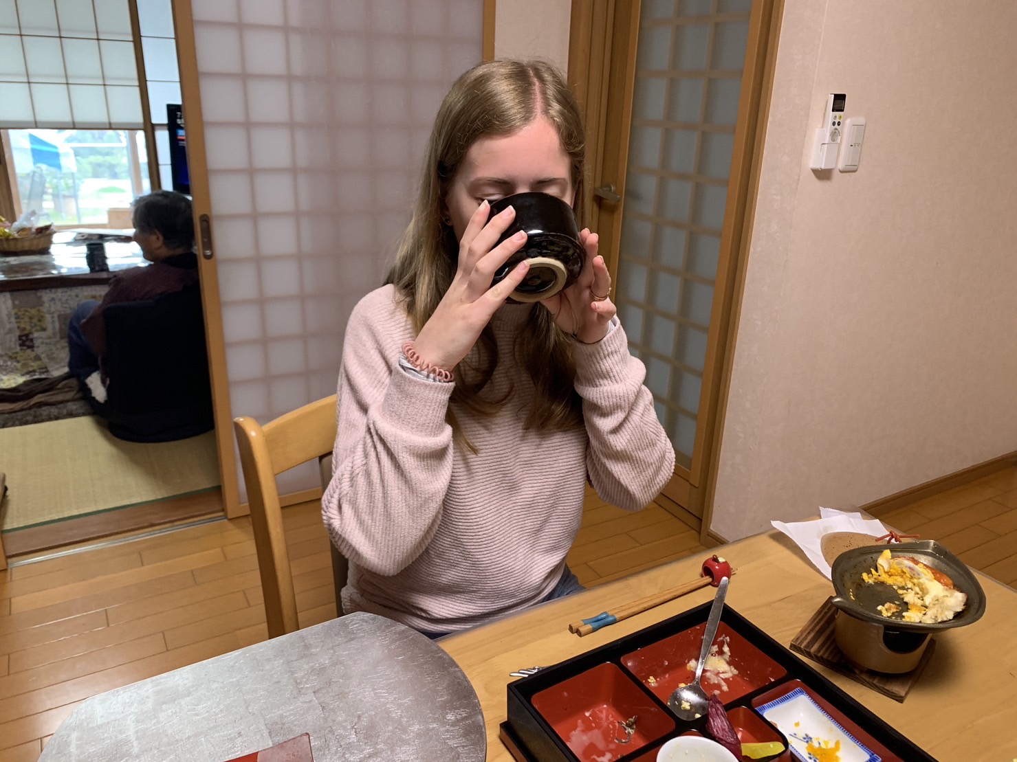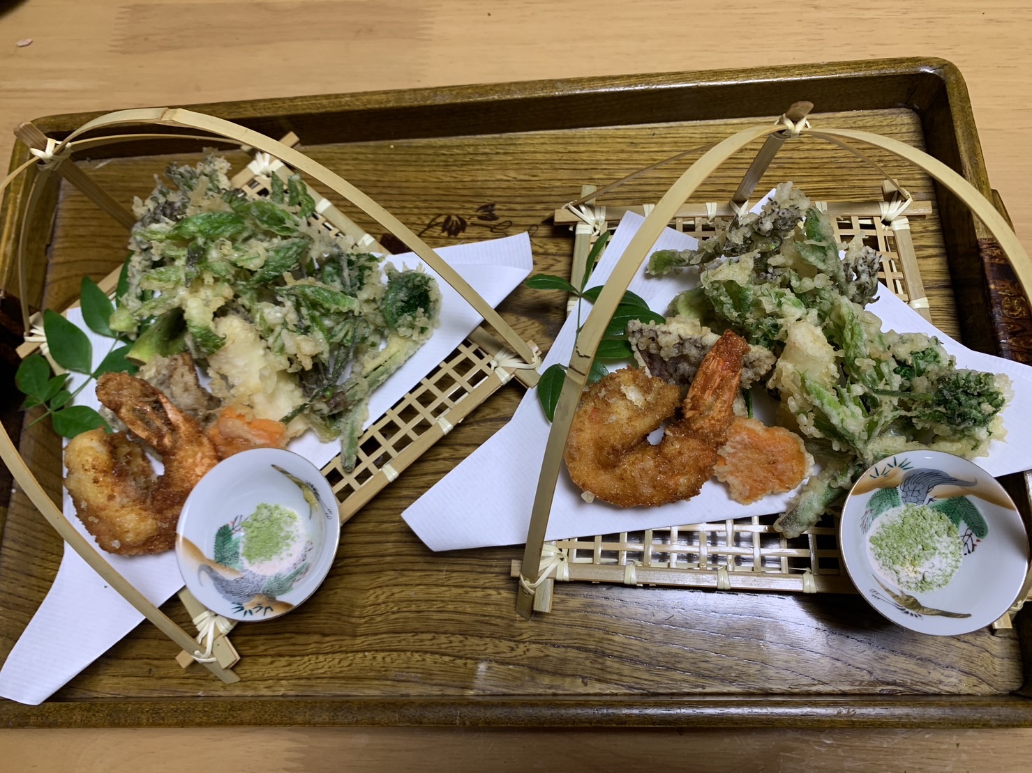 食事は山菜、アケビ、天ぷら、刺身などなど完食されました!