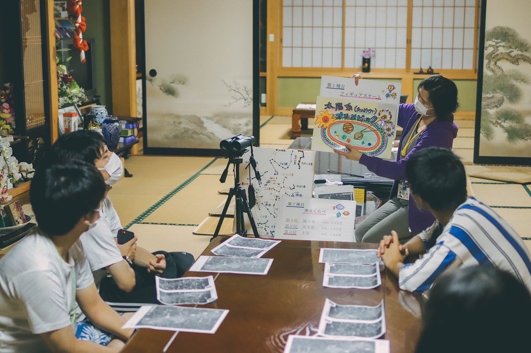 夜は、星ガイドさんと一緒に天体について話をしました。
