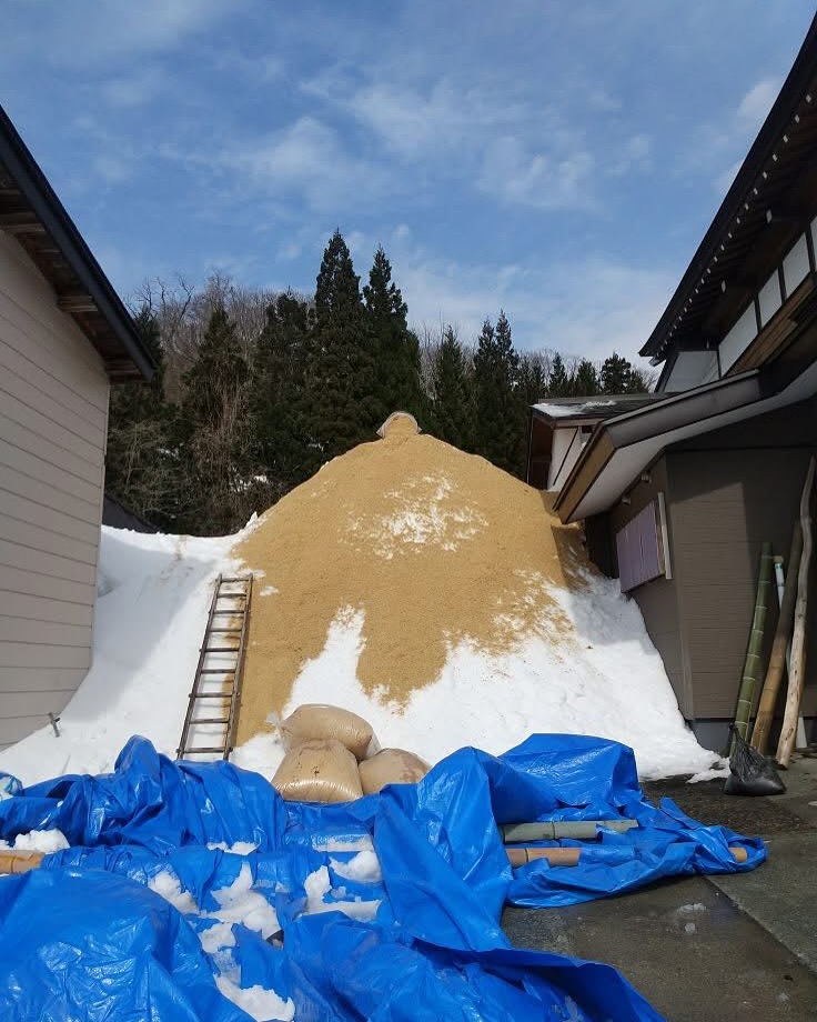 中には美味しい尾花沢産山田錦100%の地酒「雪々山々」が、地球にやさしい電気を使わないエコな雪の冷蔵庫に(七夕まつりの頃まで)100日間貯蔵されます。